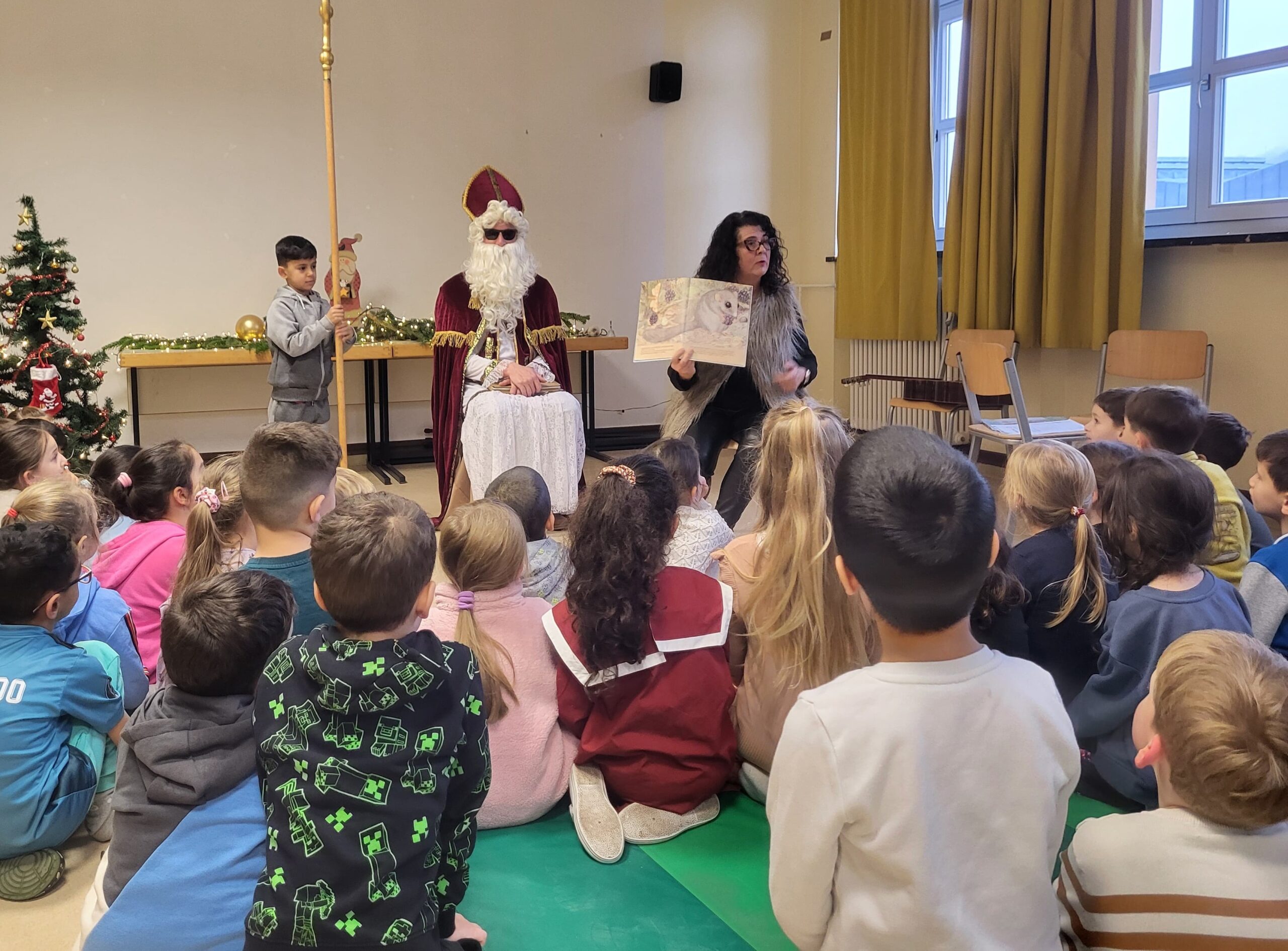 Danach las unsere Schulleitung, Frau Thalhammer, eine Geschichte vor, in der es darum ging, dass der Nikolaus auch die Tiere und ihre Jungen besucht.