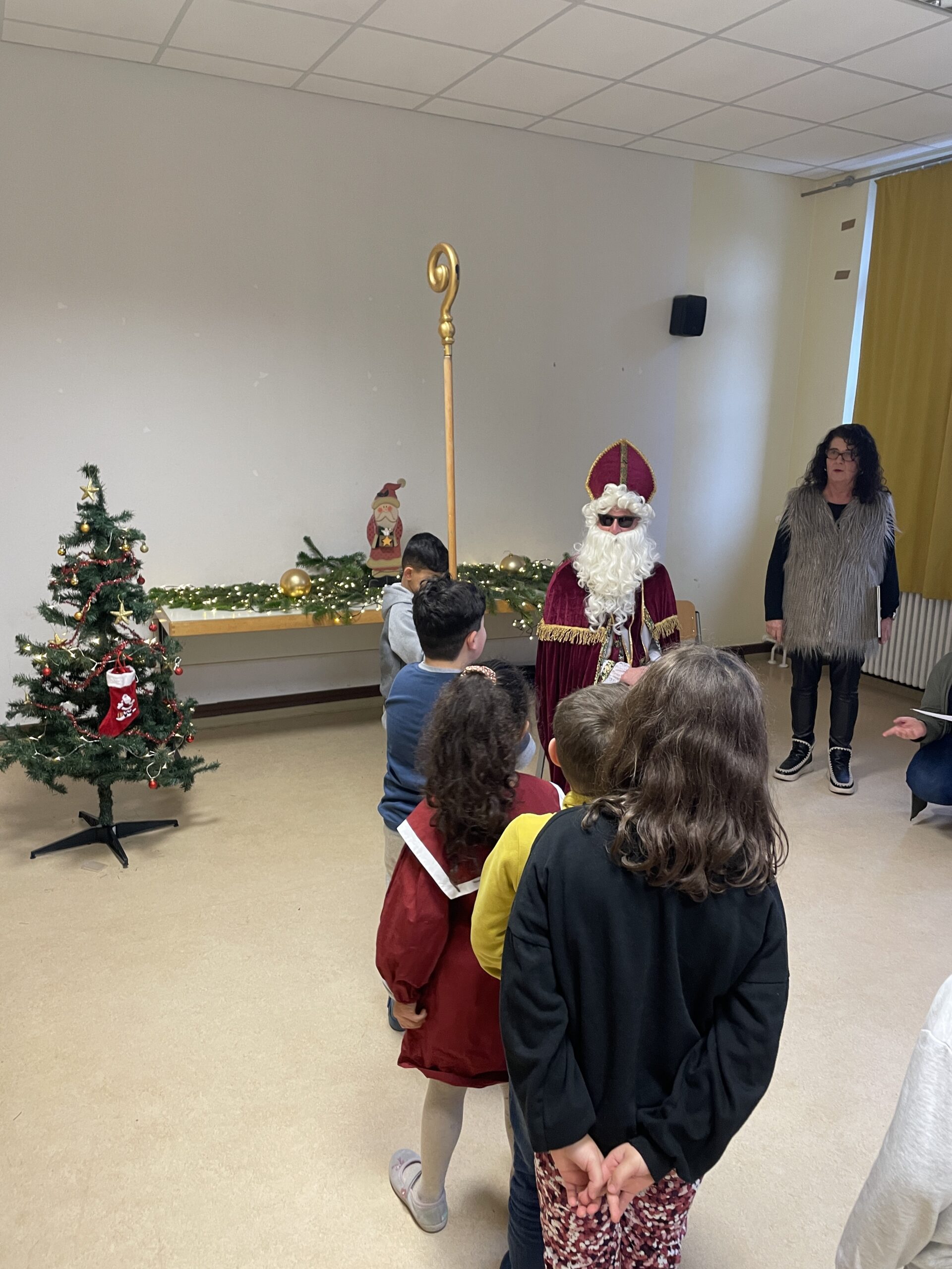 Da der Nikolaus in den nächsten Tagen zeitlich viel zu tun hat, freuten sich die Schülerinnen und Schüler der Grundschule Sankt Josef umso mehr über seinen Besuch bereits heute. Unsere neuen Erstklässler begrüßten ihn im Kombisaal mit dem Lied „Sei gegrüßt, lieber Nikolaus“.