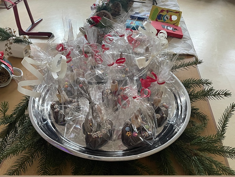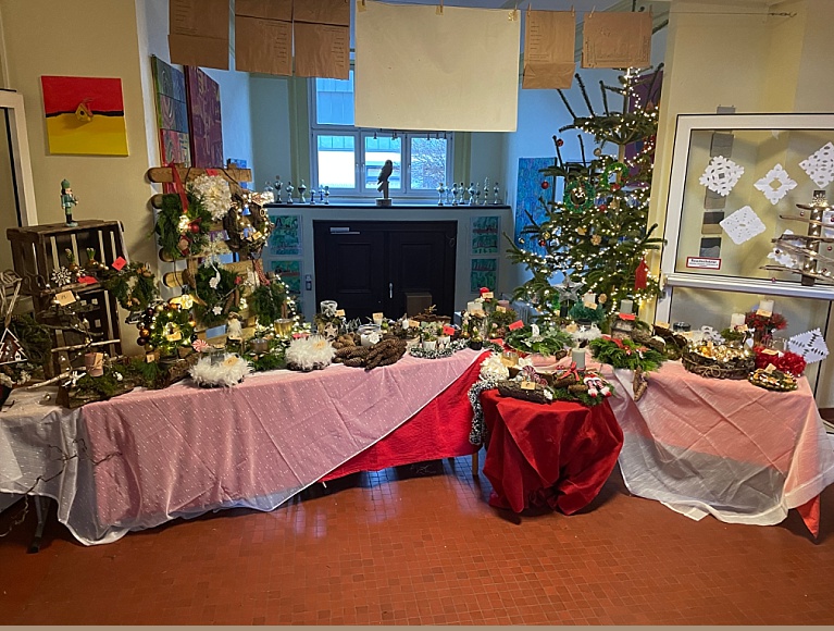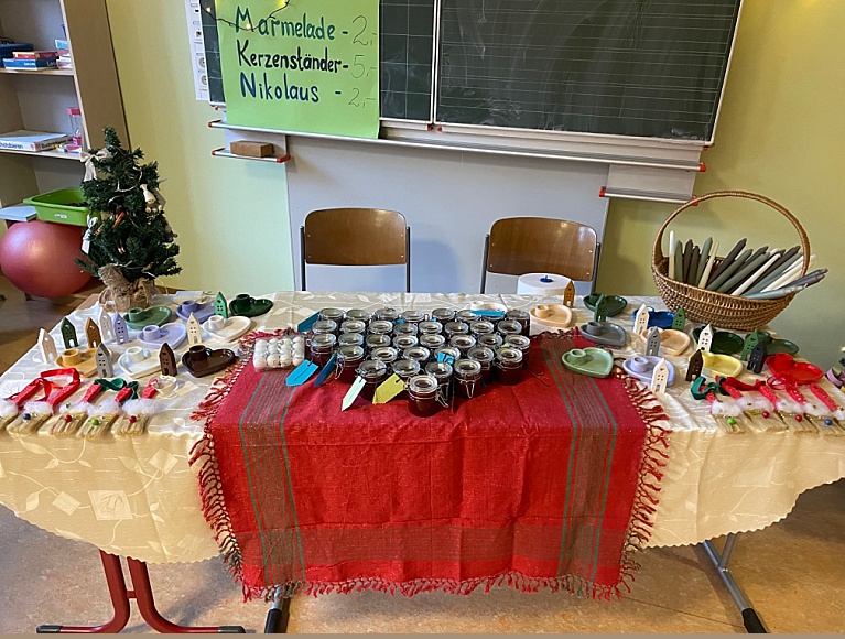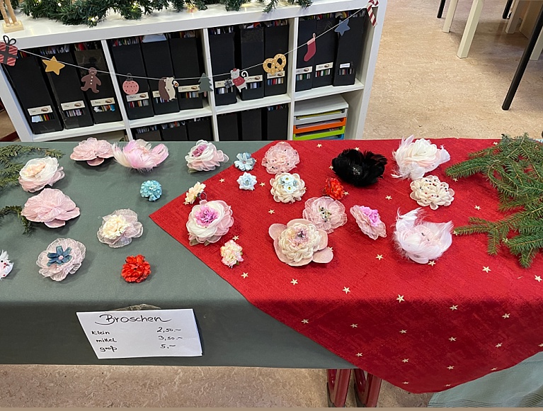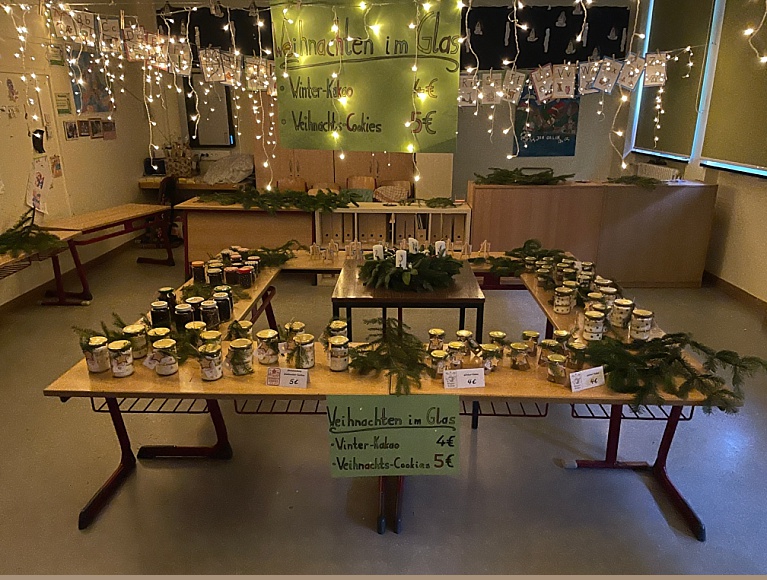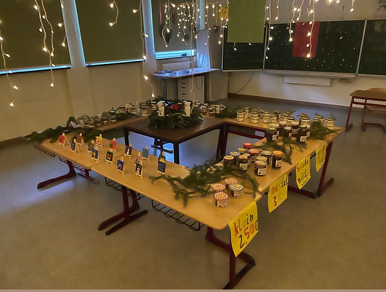 In den Klassenräumen boten die Kinder selbst hergestellte weihnachtliche Artikel an. Mit viel Kreativität, Fantasie und Engagement hatten die einzelnen Klassen gebastelt, gemalt und gestaltet. Eltern, Geschwister, Omas und Opas konnten hier liebevolle Unikate erwerben. Die Kinder waren sichtlich stolz auf ihre Arbeiten, und es entstanden viele wunderschöne Dinge, die großen Zuspruch fanden.