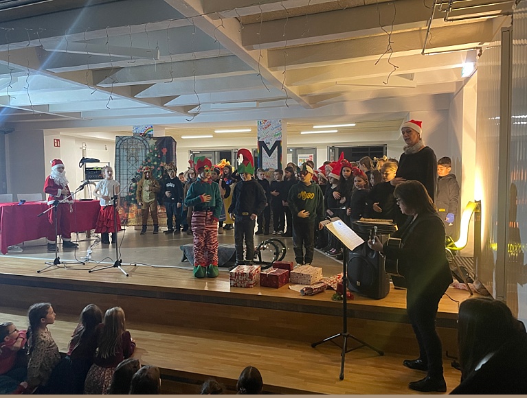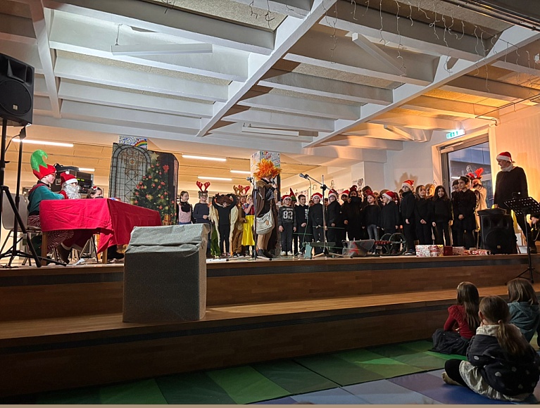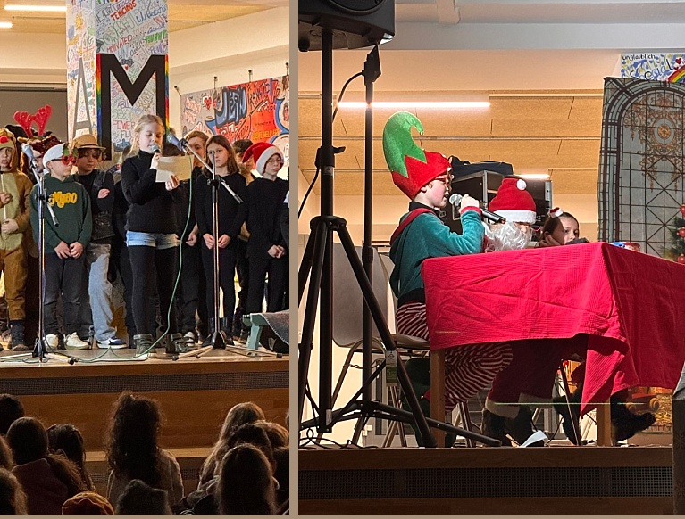 Ein ganz besonderer Höhepunkt des Nachmittags waren die beiden Musicalaufführungen der dritten Klassen. In dem humorvollen Stück ging es um einen Weihnachtsmann, der zu viele Kekse gegessen hatte, zu dick geworden war und dessen Schlitten schließlich zusammenbrach. In der Märchenwelt begann daraufhin die Suche nach einem neuen Weihnachtsmann. Mit viel Spielfreude, Musik und Witz begeisterten die Kinder das Publikum. Das Musical wurde unter der Leitung von Frau Conny Emmerich gemeinsam mit den jeweiligen Klassenlehrerinnen einstudiert. Ein herzliches Dankeschön gilt an dieser Stelle Conny Emmerich für ihr großes Engagement. Für die Aufführungen durften wir die Räumlichkeiten des BBZ Merzig nutzen. Vielen Dank an den Schulleiter Herrn Andreas Heinrich für die freundliche Zurverfügungstellung der Räume.
